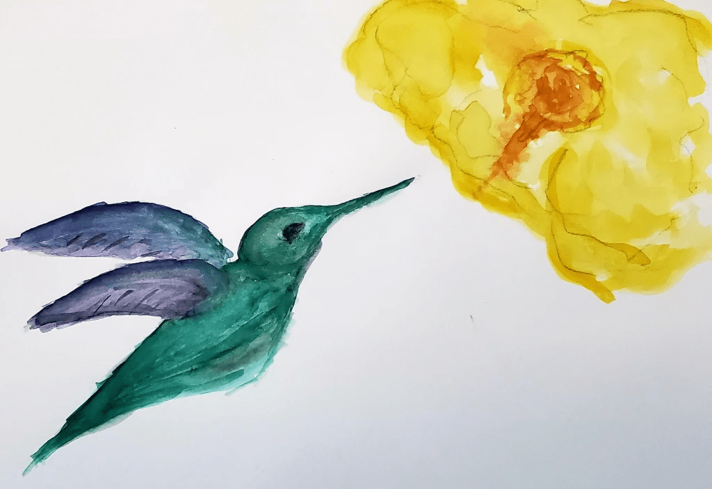 Picture credit: Watercolor of Puerto Rico’s green hummingbird (Anthracothorax viridis) drawn by Luis in summer 2020