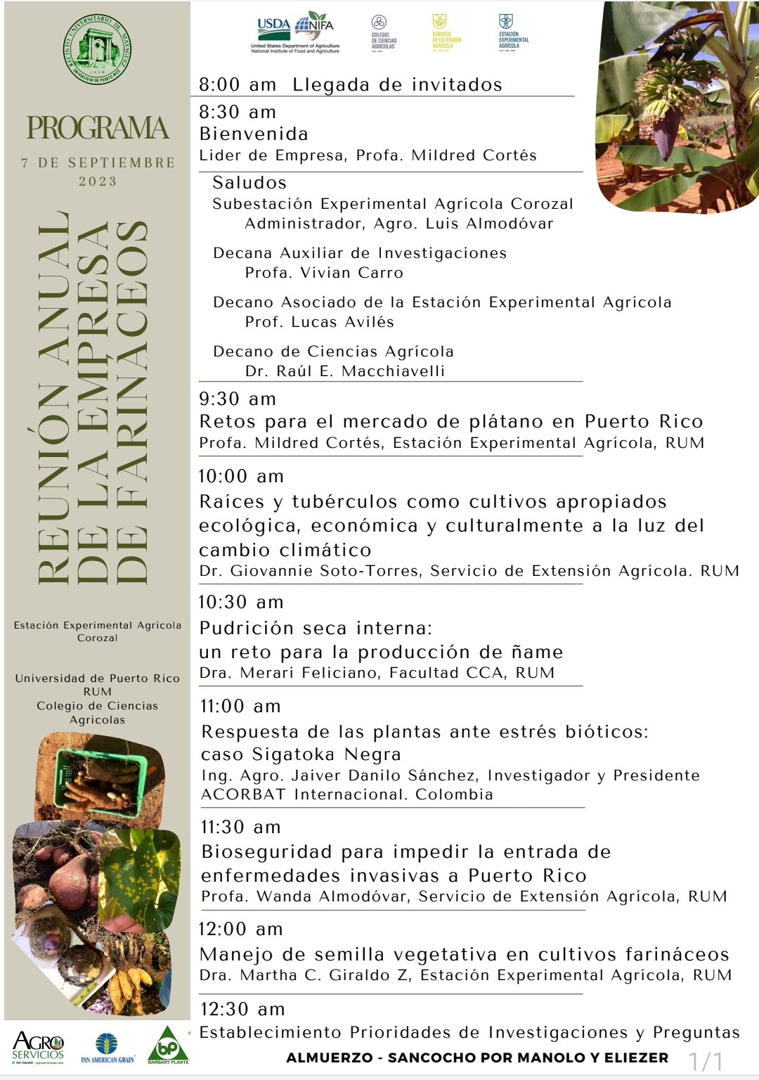 Otra empresa que se reunió recientemente, fue la empresa de farináceos. Allí se discutieron retos y estrategias en torno a plátanos y algunos tubérculos. Aquí puedes acceder a la grabación de la reunión.