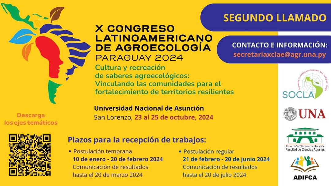 Esta semana cierra la convocatoria para postulación temprana del X Congreso Latinoamericano de Agroecología en Paraguay, del 23 al 24 de octubre de 2024.