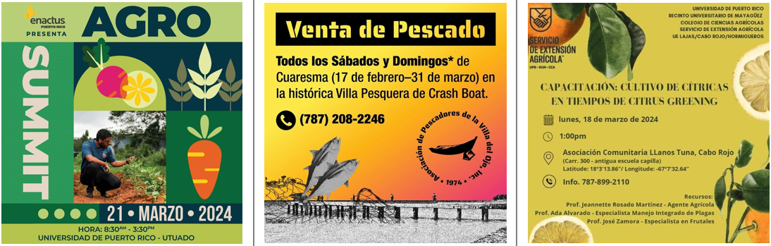 Si tienes o conoces eventos y talleres gratis o de bajo costo, relevantes para la agricultura, la pesca, el ambiente, la ciencia y las artes, me los puedes enviar para colocarlos en la sección de eventos sin costo. Anuncios de productos o eventos no educativos donde se cobra, no se publican gratis. Escríbeme para más información: unjuanadino@gmail.com.