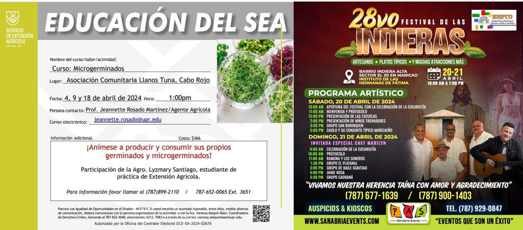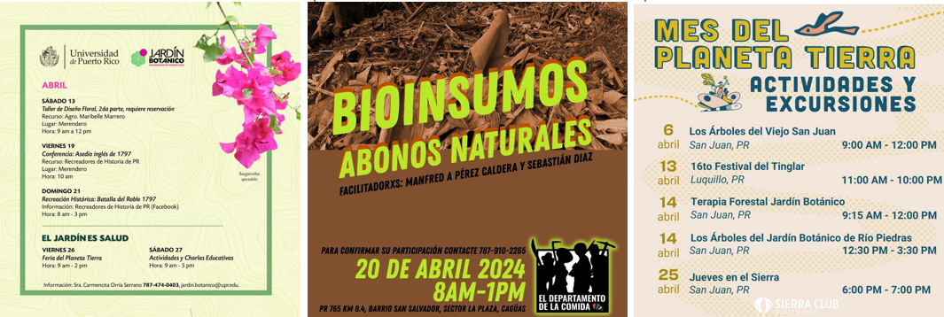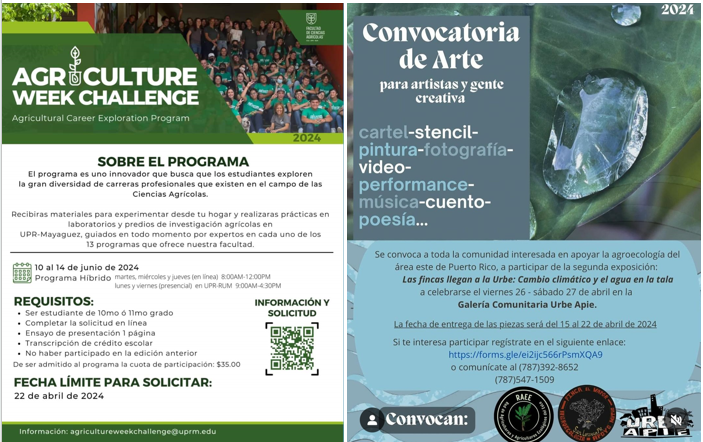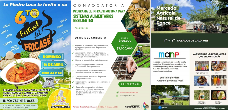 El Centro de Periodismo Investigativo está llevando a cabo su Caribe Fest en San Juan. Allí han habido paneles relevantes para nuestro sistema agroalimentario. “Tres expertos en producción de alimentos discuten los desafíos que enfrentan por el aumento de temperatura en los campos de cultivo de la tierra, la pesca y la industria lechera” (lee aquí); otro panel discutió cómo “[el] calor afecta a las poblaciones de manera diferente por la desigualdad” (lee aquí). También, “[científicas] de la salud y el ambiente resaltaron durante el Caribe Fest la necesidad de repensar los estilos de vida individuales y comunitarios ante los eventos extremos de calor y para los que hace falta generar respuestas colectivas y accesibles a largo plazo” (lee aquí). Acá puedes leer las demáas notas de las diversas ponencias y paneles presentados en el Caribe Fest, los cuales giraron en torno a la crisis climática en el contexto de Puerto Rico.