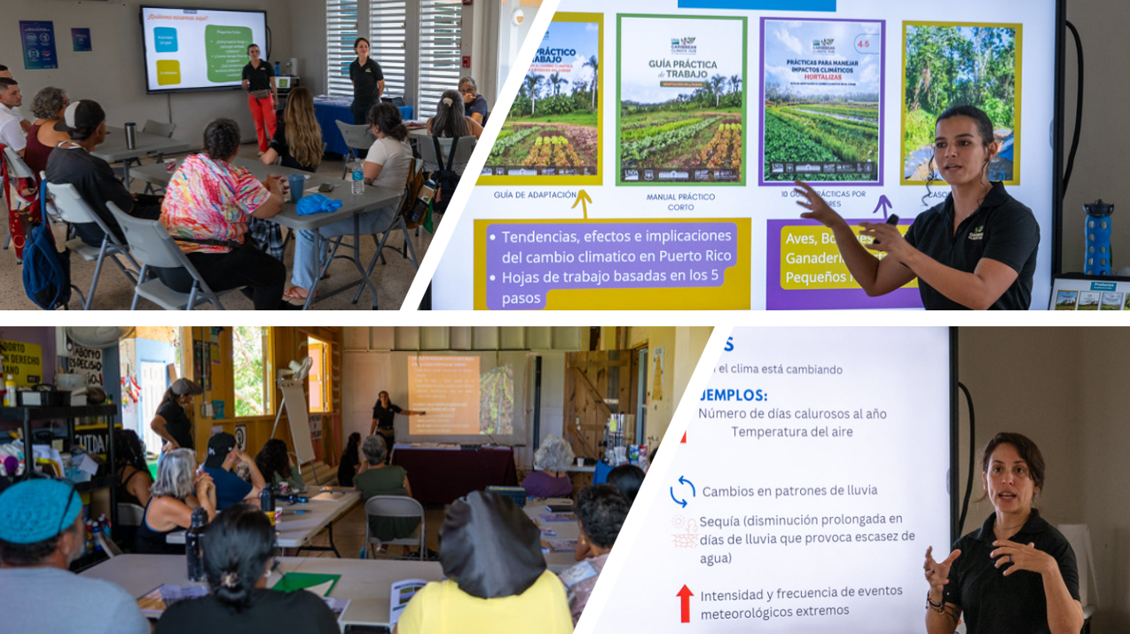 Hace unas semanas culminaron el proceso de evaluación participativa a través de talleres en diversas partes de la Isla Grande, en Vieques y Culebra. “La acogida fue muy positiva y a la gente le ha gustado la manera en que los materiales les ayudan a enlazar las prácticas agrícolas con los retos climáticos”, dijo Diana, quien también enfatizó lo gratificante que ha sido el proceso. Silmarie comentó que ha sido su parte favorita en el desarrollo de este proyecto y que dicho proceso ayudó a integrar diversos elementos que mejoraron el material. Ambas resaltaron que los talleres fueron estructurados de acuerdo con las particularidades regionales. Más de 100 personas agricultoras, comerciales y no comerciales, agentes agrícolas, personas educadoras y otras tantas comentaron y criticaron constructivamente los materiales.