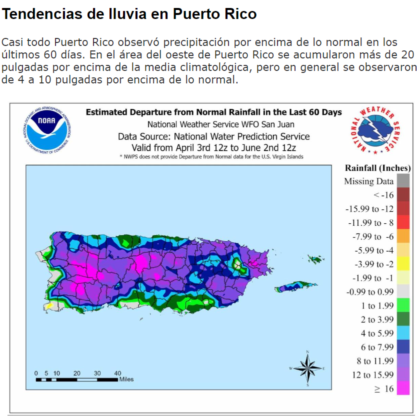 Comparto el más reciente informe detallado sobre las condiciones de sequía en Puerto Rico y en las Islas Vírgenes: “No se espera desarrollo de sequía en los próximos meses. Pronosticadores auguran una temporada de huracanes activa y húmeda en el Atlántico. Se anticipa que eventos de temperaturas por encima de lo normal y calor extremo continúen en el verano dado el aumento en temperaturas récord en el Mar Caribe y océano Atlántico”. Accédelo aquí.