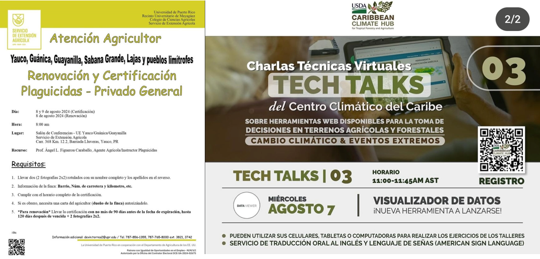 Ambas expresaron que una alternativa que tienen los productores es utilizar las clínicas de diagnóstico de la Universidad de Puerto Rico, las cuales ayudan a determinar posibles causas y enfermedades y cursos de acción. Hay tres, una en Juana Díaz, una en Mayagüez y otra en Río Piedras. “Se recomienda que contacten al agente agrícola local del municipio, quien entonces le puede ayudar a tramitar [el proceso]”, dijo Macchiavelli Girón. Añadió también que las personas pueden enviar una muestra a la clínica y se le hace un diagnóstico y le dan recomendación