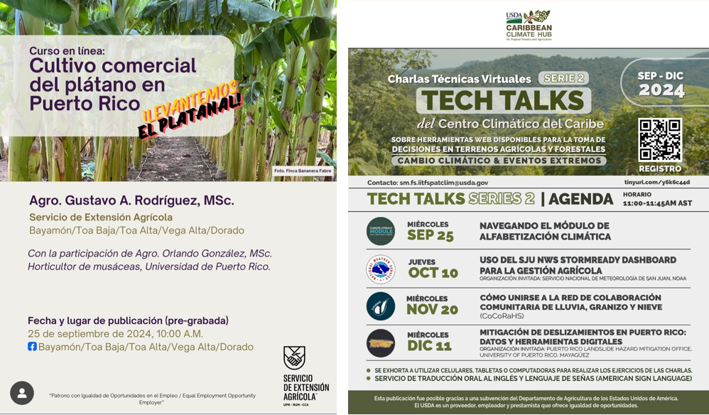 Impactos claves en Puerto Rico: Julio y agosto fueron meses de lluvias continuas que impactaron las fincas y la producción de alimentos en Puerto Rico. El paso de la tormenta tropical Ernesto a mediados de agosto provocó deslizamientos de tierra y daños en los caminos de acceso a las fincas, así como inundaciones y pérdidas de cosechas. Las lluvias también provocaron alta humedad y la aparición de hongos en las cosechas de algunas zonas como las islas municipio de Vieques y Culebra. Agricultores reportaron parches secos en algunas regiones del suroeste. (énfasis mío)