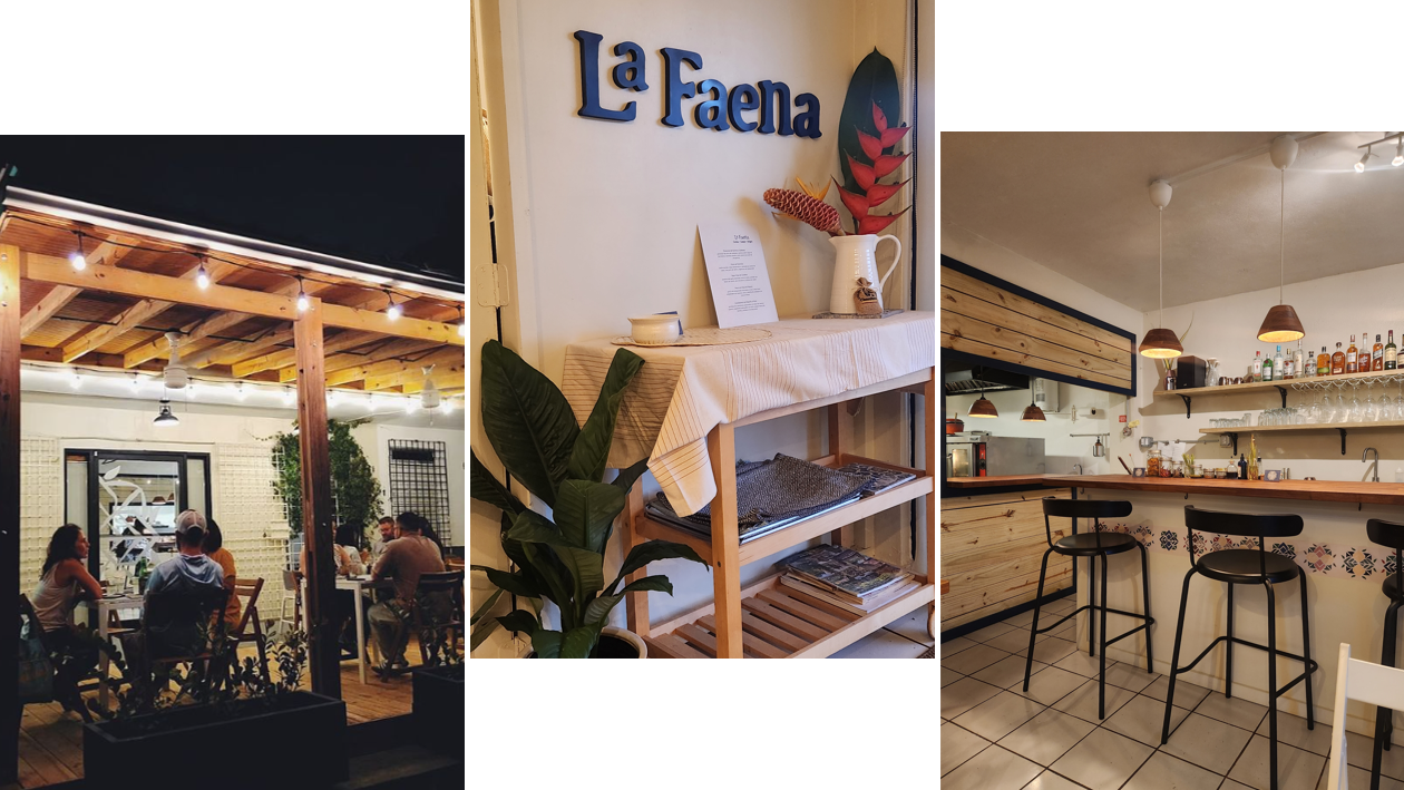Me arrepentí de no haber reservado mesa afuera cuando fui aquella noche de junio cuando reabrieron. La música tenue, tropical, que danzaba con el vaivén de pasos y ruidos me dejaron saber que había mucho baile en la cocina. Una mesa con seis personas, otra con cuatro y varias con dos o tres. Se me hizo difícil cruzar la mirada de Vivianna, una de las gestoras del proyecto. Kevin, quien fundó AgroCocina—un servicio de “catering de alimento consciente”, de lo cual La Faena es parte—estaba inmerso en el baile de la cocina. No pude saludarlo, pero sí abracé a Vivianna y hablamos un rato. Tenía una combinación de emoción con nervios e ilusión por esta reapertura. “¿Qué les parece, todo bien? Yo sé que está un poquito lento”. Algo así me dijo, pero de verdad que el servicio no estaba nada lento y la comida, pues, como siempre un encanto.