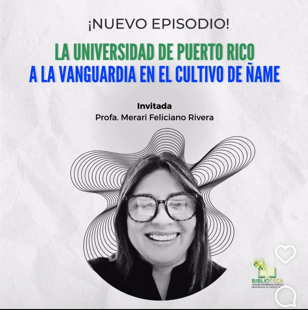 Nuevo epidosio del podcast de la Estación Experimental AGrícola. “La Dra. Feliciano lidera proyectos clave en torno al cultivo de ñame, el tubérculo de mayor relevancia en Puerto Rico tanto por su valor económico como por ser el favorito de los consumidores. Actualmente, sus investigaciones se centran en el manejo y control de la pudrición de la semilla, logrando avances muy prometedores. Además, ha desarrollado una guía integral sobre el manejo del cultivo de ñame, diseñada para optimizar el trabajo de los agricultores. En este programa, dialogamos con la Dra. Feliciano sobre sus proyectos de investigación y los beneficios que estos aportan al sector agrícola”.