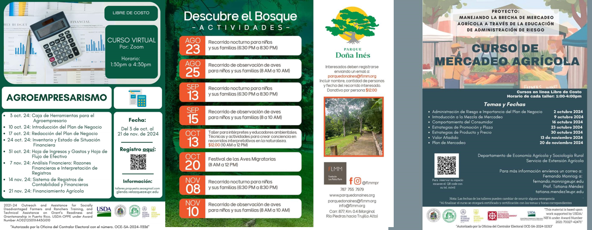 La propuesta titulada Incorporación de la Economía Agrícola en el programa doctoral de Agricultura Tropical en Puerto Rico creará los cursos: (1) Economía agrícola avanzada; (2) Econometría avanzada; (3) Política y estudios sobre seguridad alimentaria: Desafíos, soluciones e implicaciones; (4) Economía conductual y experimental; (5) Economía ambiental avanzada; (6) Planificación agrícola avanzada y gestión financiera; (7) Política agrícola y ambiental avanzada; y (8) Recolección avanzada de datos: Herramientas para datos secundarios.