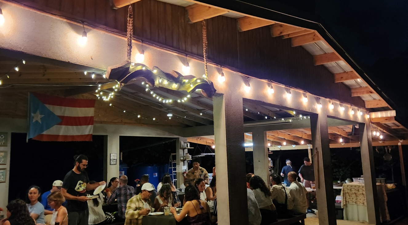 Ya el camino no era alumbrado por el sol, sino por unas cuantas antorchas cuyas llamas parecían bailar al son de los coquíes e insectos que habitaban allí. Subimos la cuesta junto a una comensal que había venido desde Ponce. Nos contó a Mónica y a mí que había regresado a Puerto Rico hace un tiempo y que quería insertarse en la agricultura. Nos habló de su familia y de su trasfondo criándose y trabajando en el cafetal de la familia. Le mencioné del Huerto Urbano del Callejón Trujillo en Ponce, de la Finca Reverdecer y de otros espacios en el sur que son ejemplos de lo posible en estas islas nuestras; que son lugares que están sembrando y cosechando soberanía alimentaria para lograr “un buen vivir”. Una cosecha como la que probamos en el Festín en la Tala.