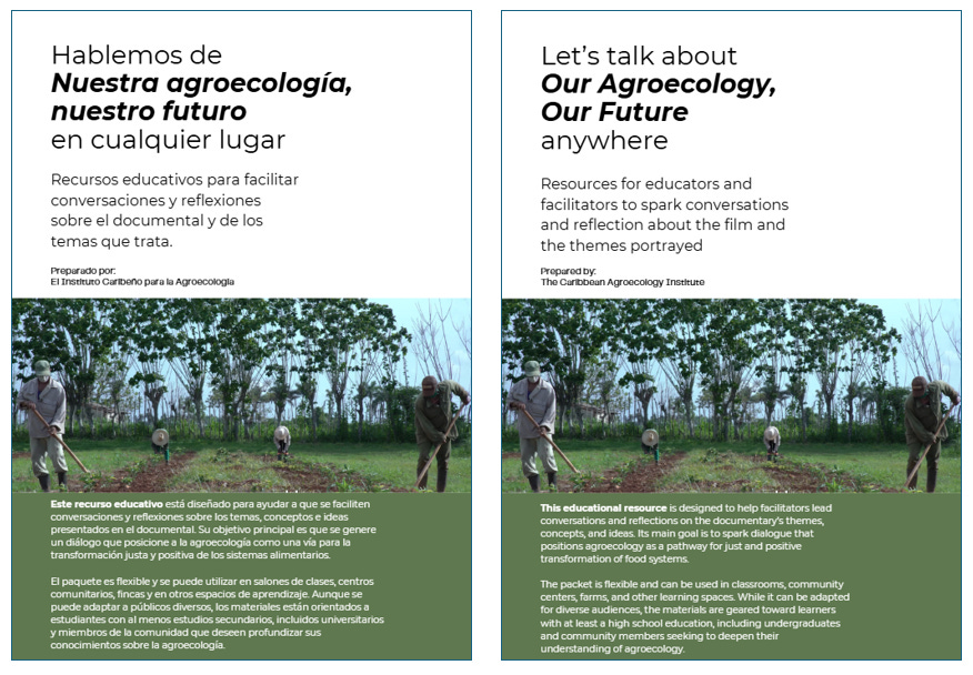 “Nuestra Agroecología, Nuestro Futuro explora estos matices, así como el potencial de la agroecología, a través de las voces de agricultores y especialistas. Estos líderes defienden por qué la agroecología es el camino para que Cuba alcance una verdadera seguridad y soberanía alimentaria. A medida que la crisis económica del país se agudiza, los recursos escasean y los precios de los productos importados aumentan, la agroecología en Cuba es ahora más importante que nunca. Este documental fue coproducido por CAI y Kandela Productions, en colaboración con el galardonado medio de comunicación Belly of the Beast.”